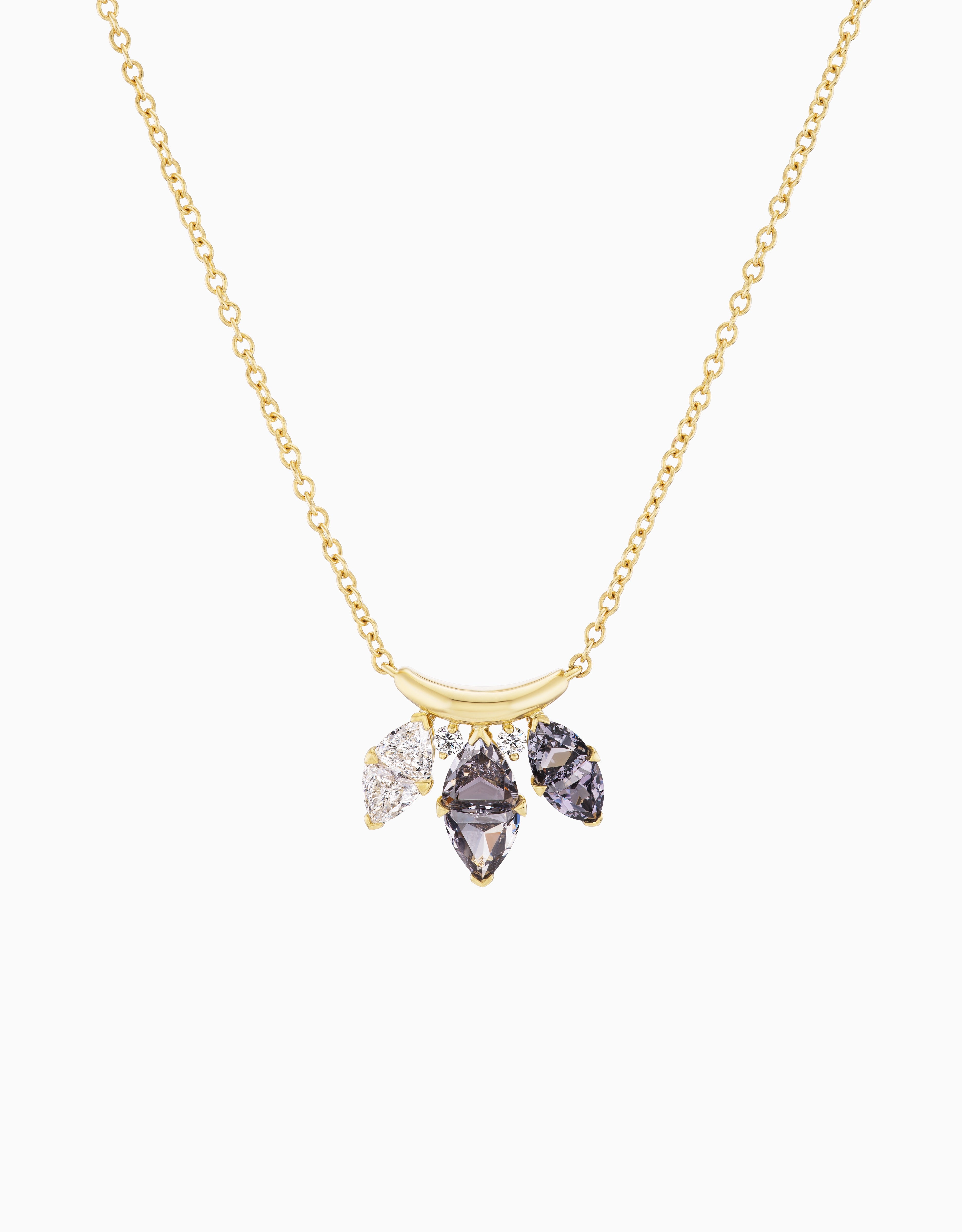 Crafted in 18k yellow gold, this regal necklace features dazzling diamond and striking spinel. Designed to evoke elegance and power, the crown-inspired setting makes it a statement of timeless sophistication.
